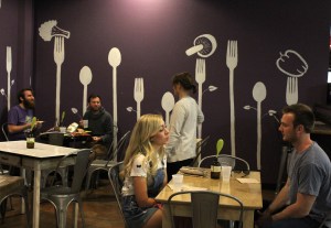 Customers enjoy the delicious and fresh options available at the Stem and Spoon café inside The Truck Patch grocery store. The café features a Grab’N’Go section, a salad bar and various smoothie and juice options. (photo by Destini Lattimore)