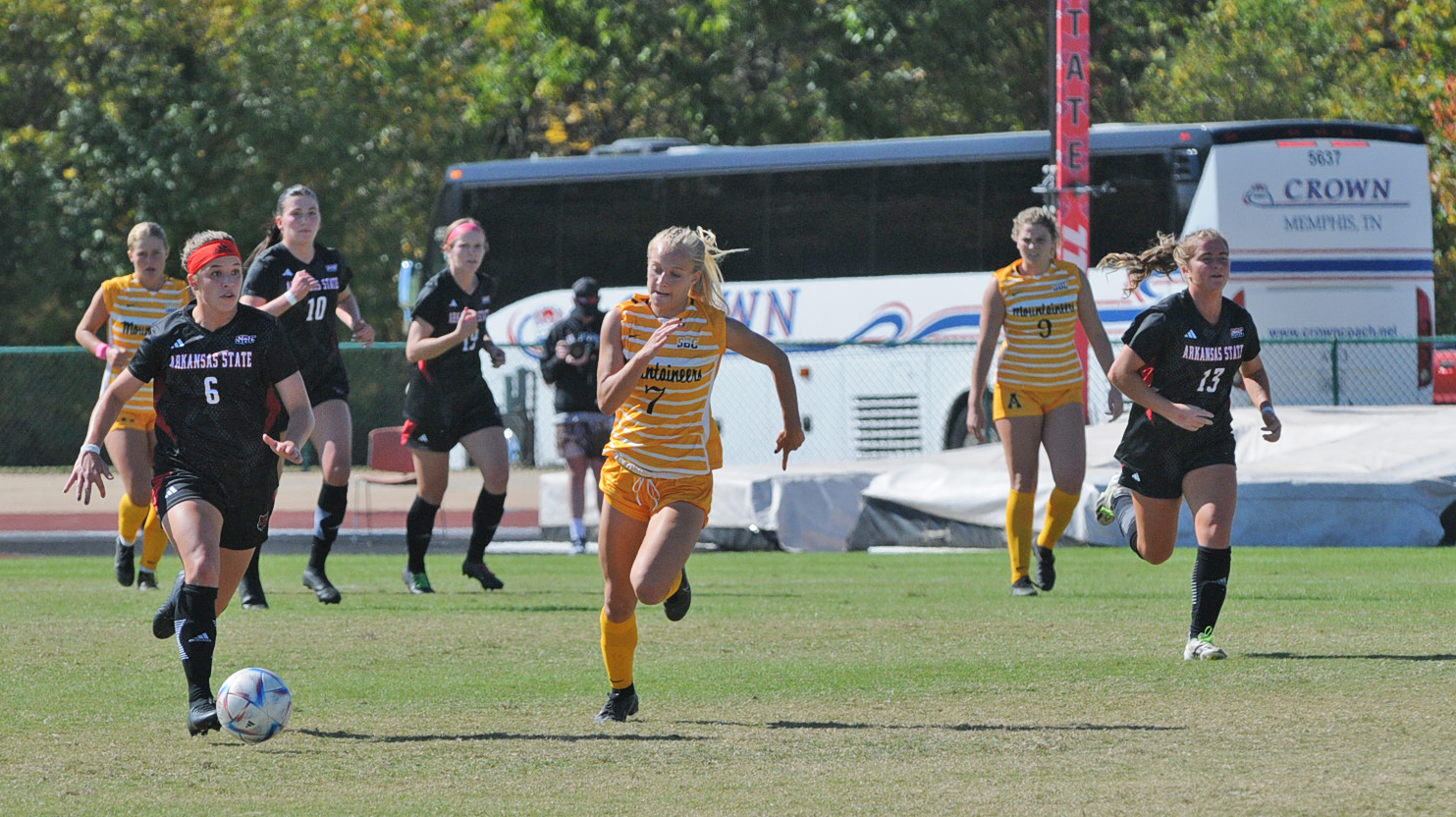 JONESBORO, Ark. – A-State women’s soccer squared-off against the Appalachian State Mountaineers for a matchup at A-State Soccer Park on Senior Day, Sunday, Oct. 22, 2023. The Red Wolves were defeated 2-1 during their last home match. The team will travel to Mobile, Alabama Thursday to face off against the South Alabama Jaguars for their last game of the season.
