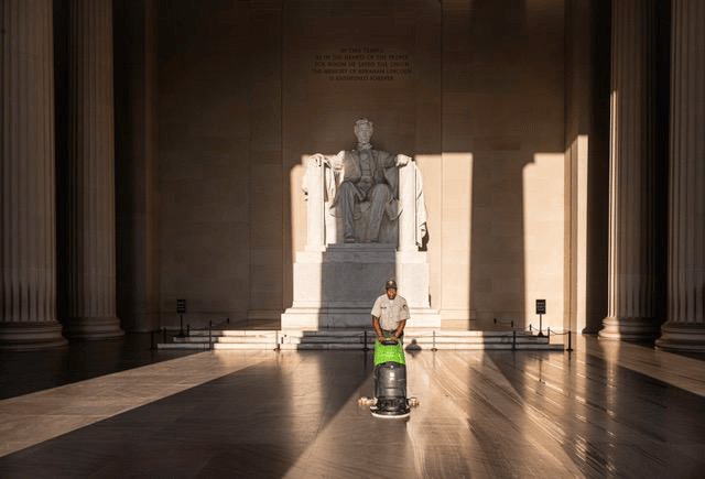 “A U.S. government employee, an older Black man, was polishing the floors in front of Abraham Lincoln with the morning lights streaming through the columns and lighting him up,” Meripol said. “And I shot maybe one of my single favorite pictures of my life.”