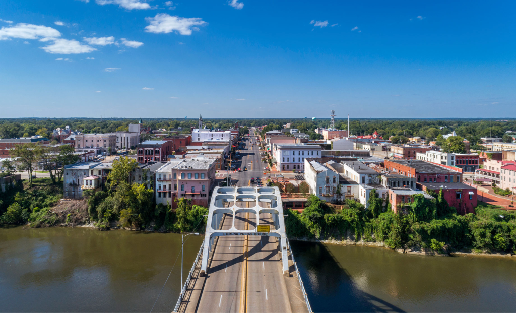 Landmarks photographed in the exhibit include Little Rock Central High School, Mosaic Templars Cultural Center, Edmund Pettus Bridge, Medgar Evers’ home, and Martin Luther King Jr. Memorial.