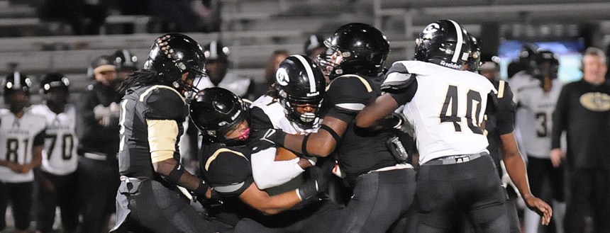 Jaguars pounce out the Golden Hurricane 29-13 Delta Digital News Service Sept. 8, 2023 By Brayden Morse | Sports Editor JONESBORO, Ark. – DeSoto Central capitalized on Jonesboro’s turnovers and penalties with multiple scores to give the Jaguars a 29-13 victory over the Golden Hurricane Friday night at Cooksey-Johns Field. Jonesboro quarterback Terrance Brown threw